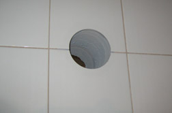 Под потолком, в углах стен Делаем отверстия в углу стен,